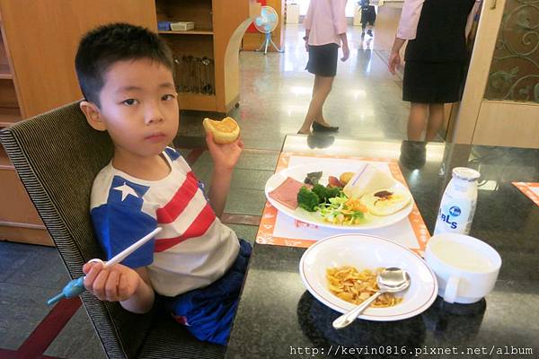 天氣蠻熱的 吃不太下 , 不過 小比早餐吃的少 加減要他吃一點 在中餐廳簡單吃