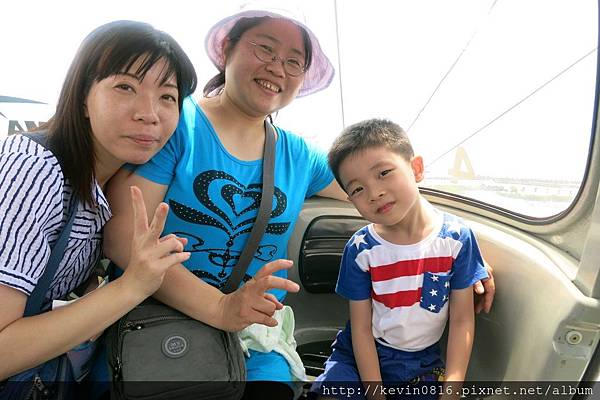 因為怕撞擊不建議坐我前面,所以服務人員說小孩要坐我後面抱著我 我只好一隻手抓小比的手 一隻手抓欄桿..