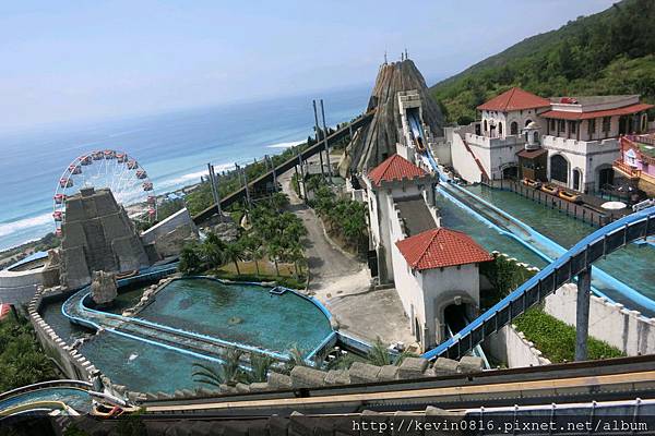 纜車上拍的 可以看接下來要玩什麼 對 摩天輪要去 還有 小比指定要玩右邊衝下水的海賊灣 哇~