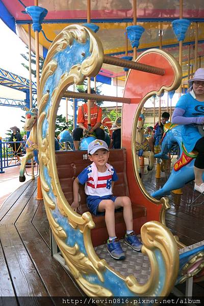 簡單的先來好嗎? 旋轉木馬~~ 他竟然不是騎海豚, 因為椅子上寫"博愛座" 他坐捷運都坐博愛座