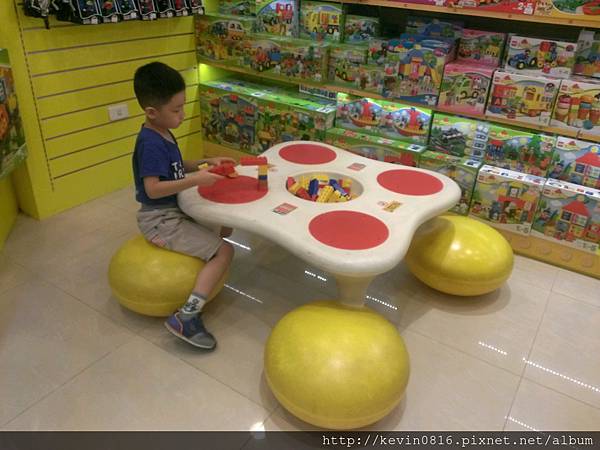 店裡有個座位區給小朋友試玩 這裡是大顆的積木 跟家裡的2桶一樣大