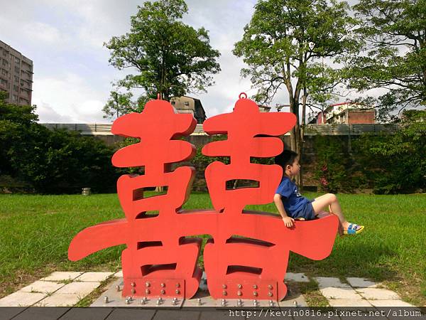 這裡是適合婚紗拍攝的河濱公園哦~ 還有個大大紅色的囍字
