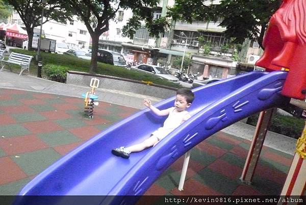一早帶比比去吃清粥小菜後,,就來去公園玩一下一人獨享的溜滑梯