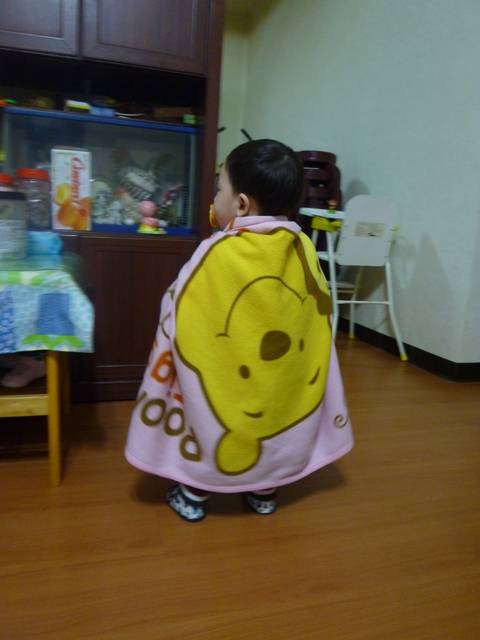 這條小被被在屈臣氏買的 現在暫時買不到了 想不到小比粘這條被被粘的很兇 怕他踩到被被跌倒 乾脆把被被綁身上 走到哪都要拖著 簡直是在演史努比裡的 奈勒斯